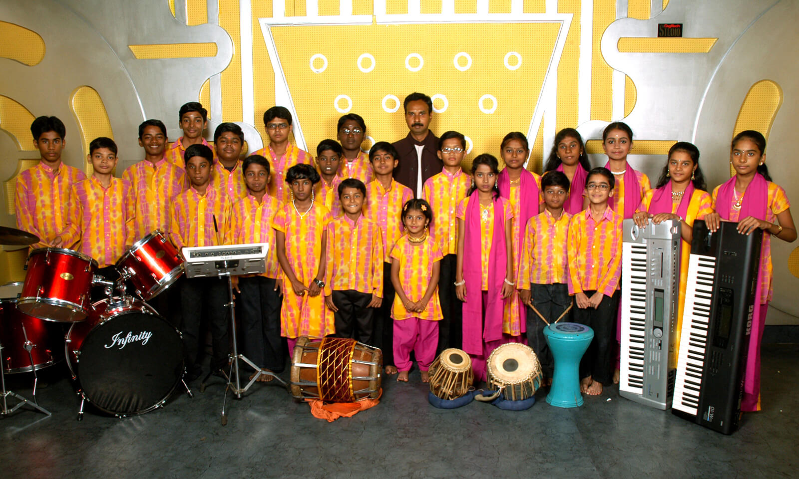 A band with 12 vocalists and 10 instrumentalists, the ISAI MOTTUGAL, the first children Orchestra in India, well trained and professional, has done more than 1000 stage performances throughout India and Srilanka. Isai Mottugal has the fame singing and playing with all eminent playback singers and instrument players.